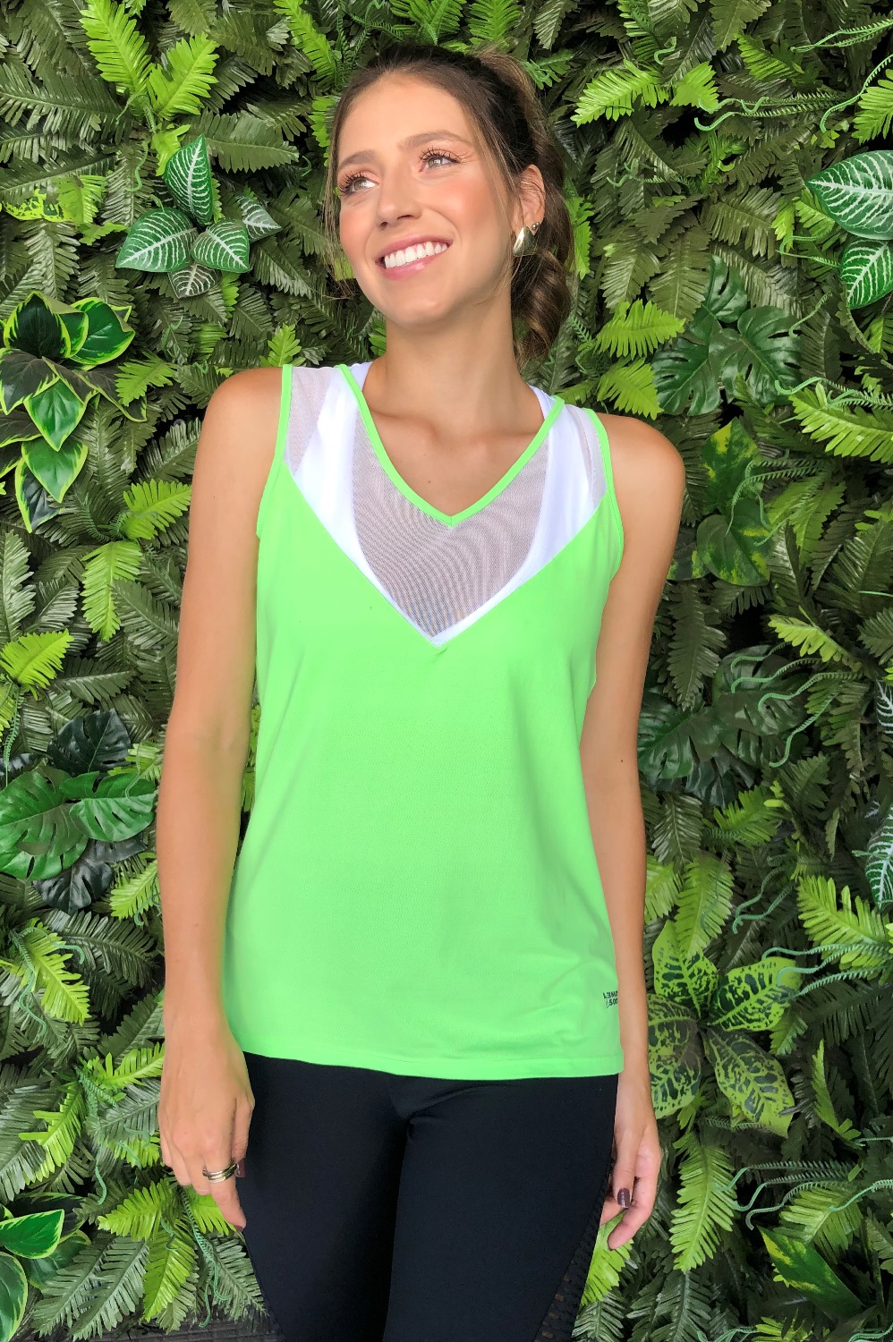 REGATA EM TECIDO DE POLIAMIDA, COM RECORTE EM TRANPARENCIA.